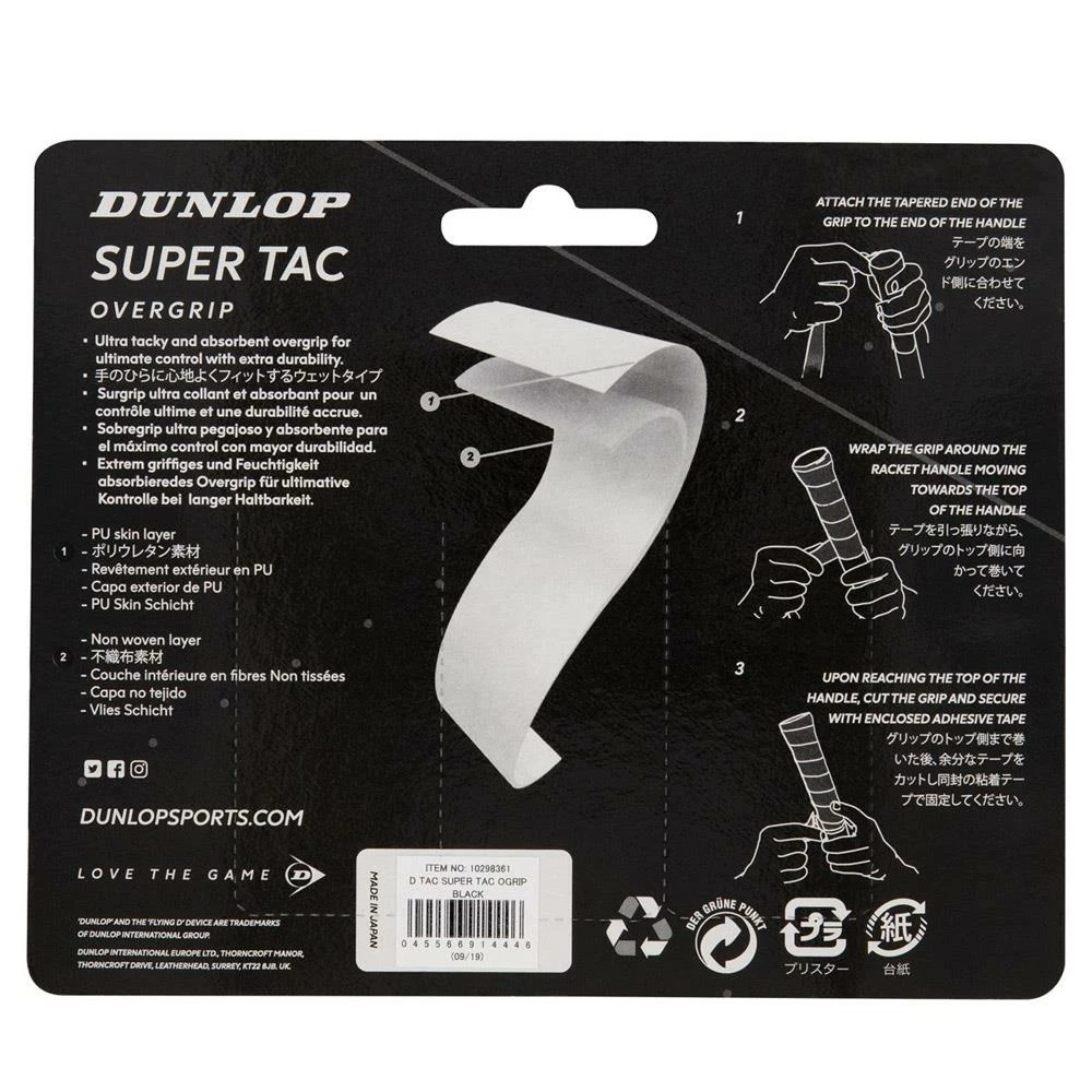 Great for dry hands and those looking for a tacky grip. The Dunlop Super Tac Overgrip offers superior grip, nice feel and good durability.